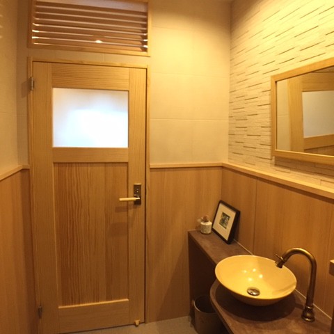 タイル貼りで寒くお掃除も大変。暗くてジメッとしているトイレになんとかしたいと思っていたそうです。そこで、木の素材を使った温かみのあるトイレにイメージチェンジしては?!とご提案。
