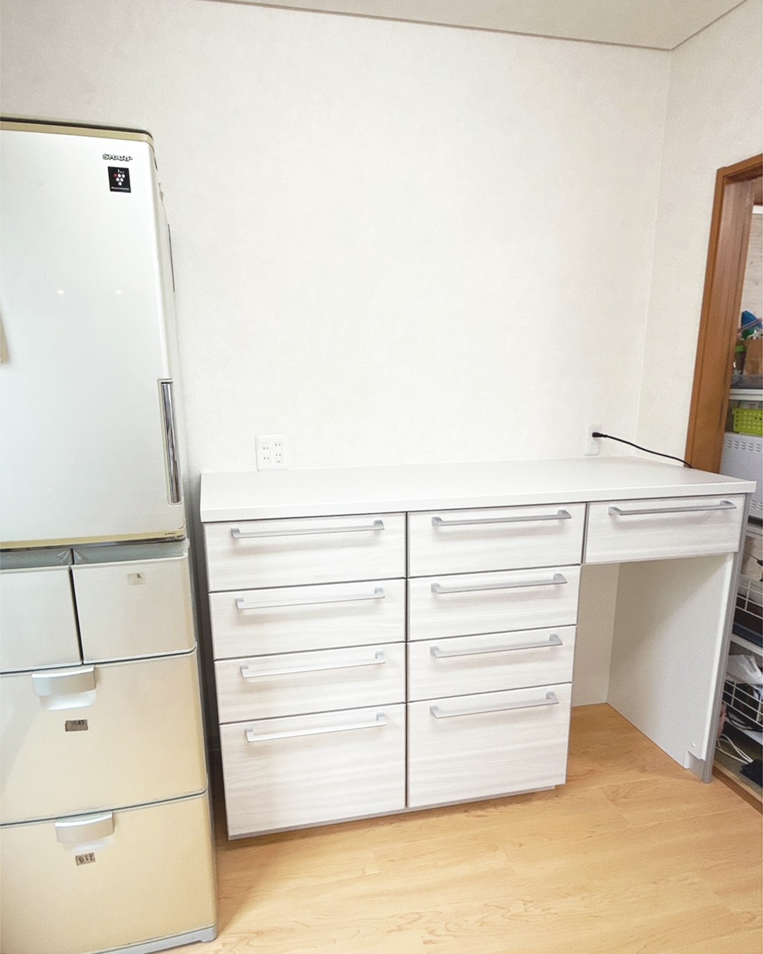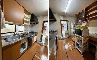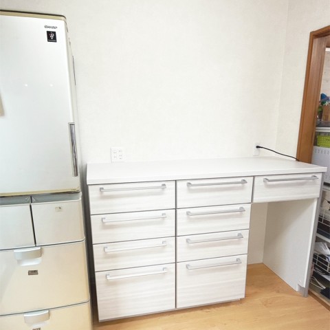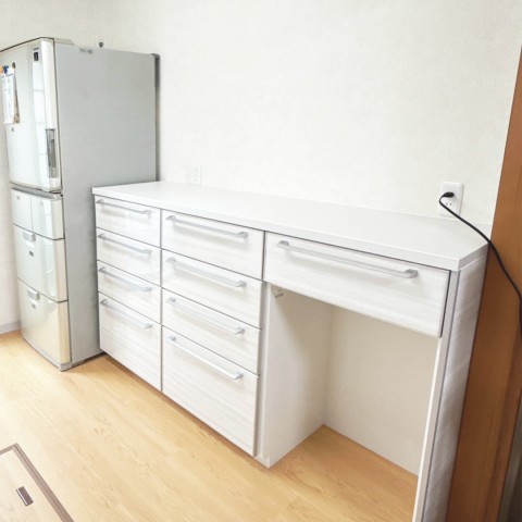 吊戸棚を撤去し、キッチンとカップボードを